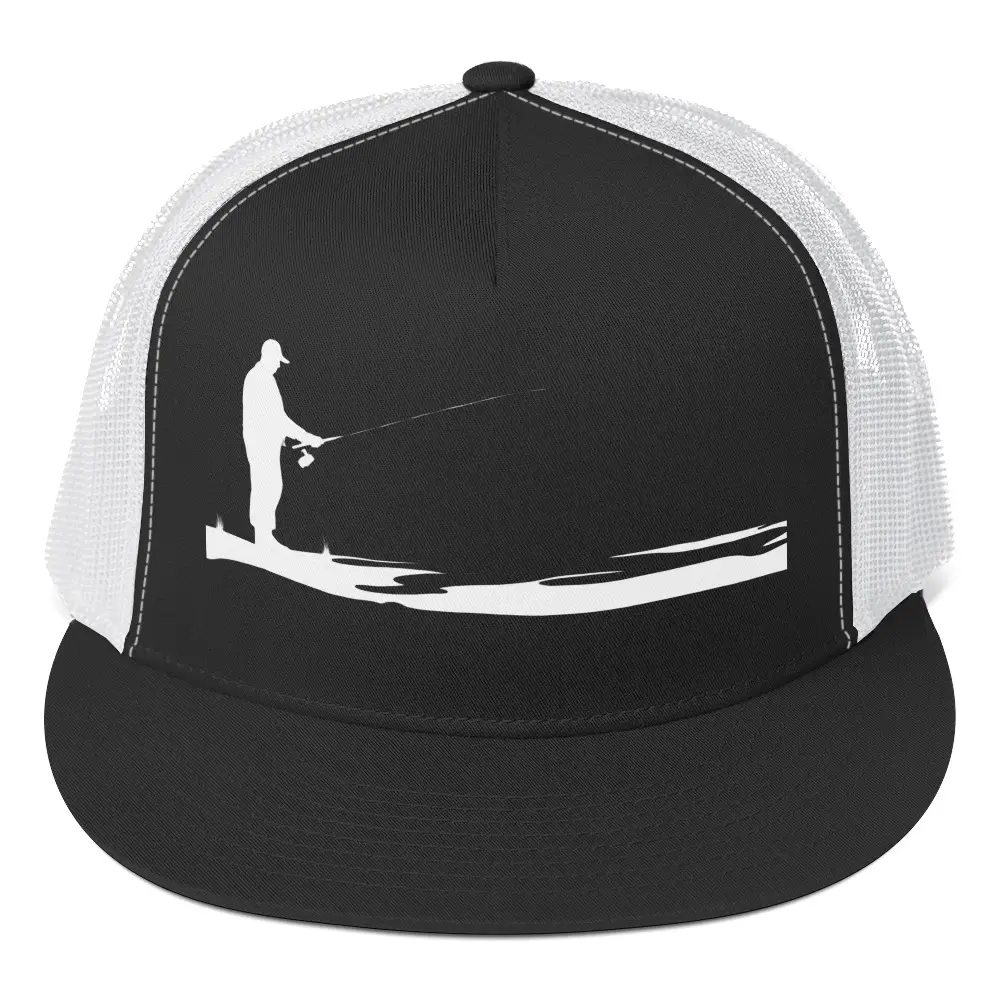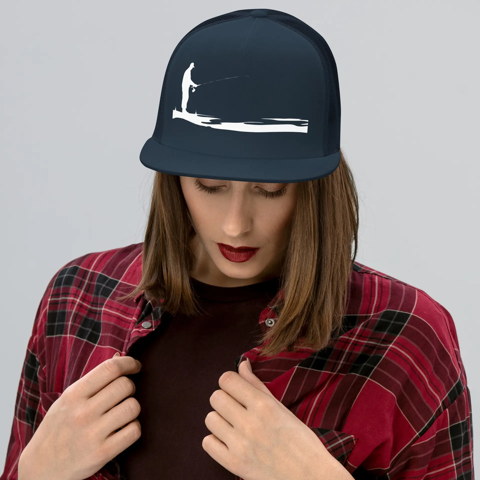 Minimalist Fishing Design trucker cap style with a cool fabric blend.